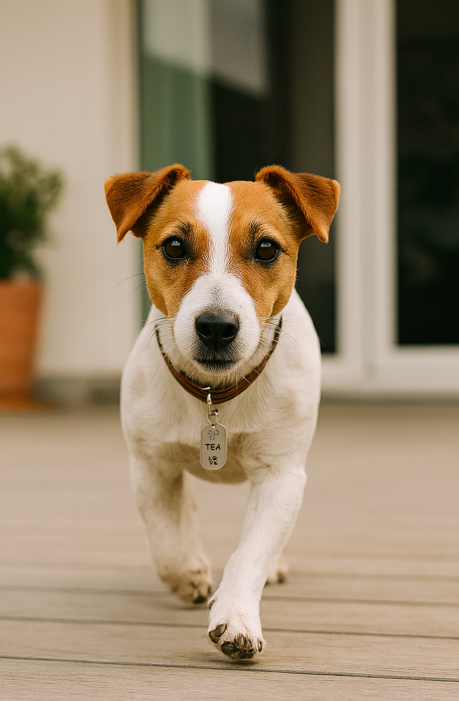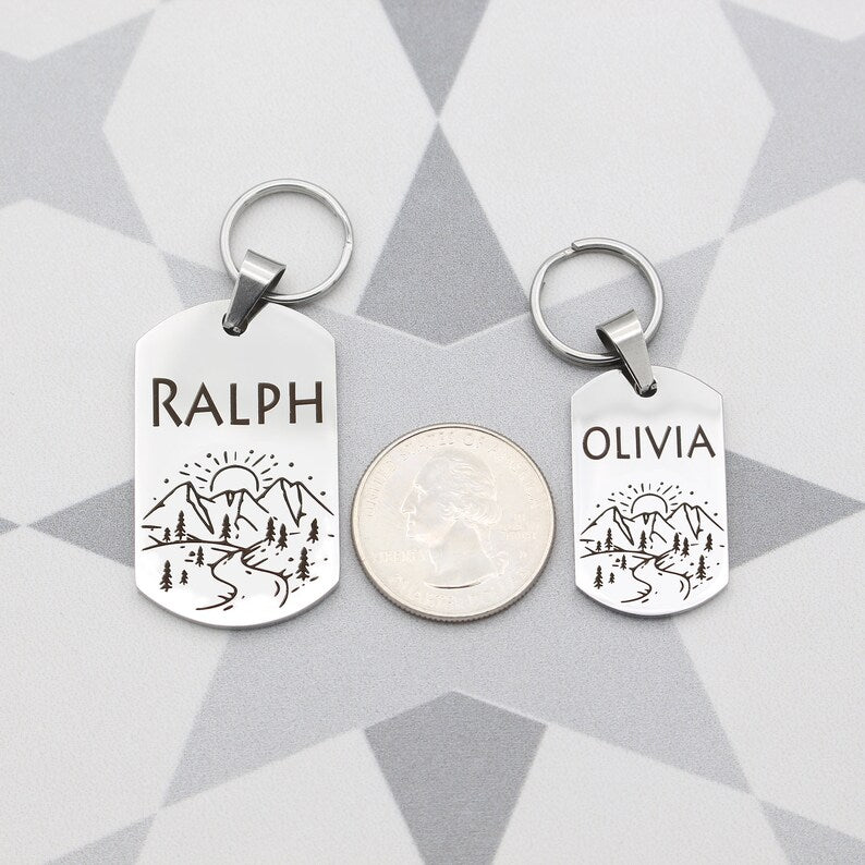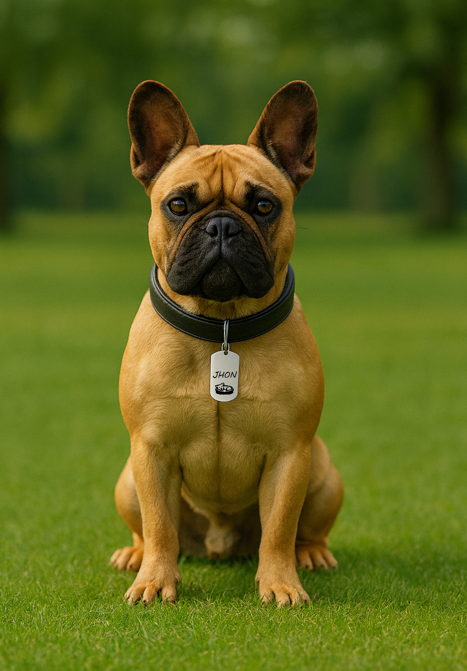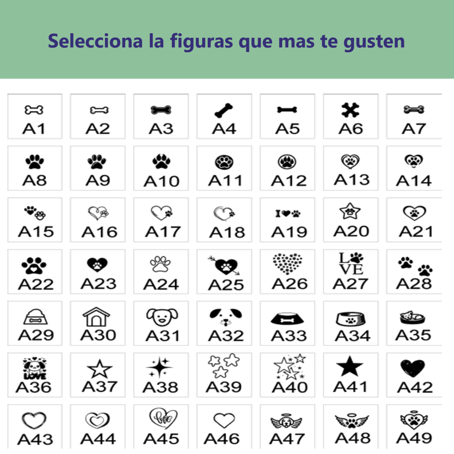 - Lado frontal: Nombre de tu mascota (hasta 14 caracteres) + ícono decorativo