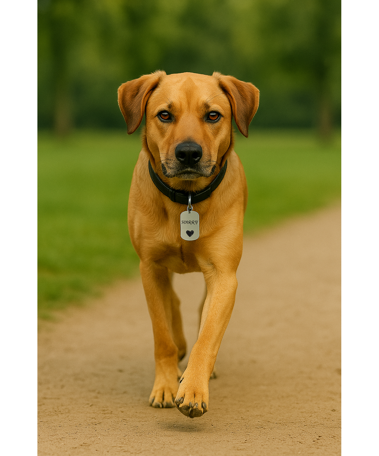 Placa de identificación estilo militar, diseño robusto y resistente inspirado en las placas de identificación de las fuerzas armadas. Perfecta para mascotas aventureras.