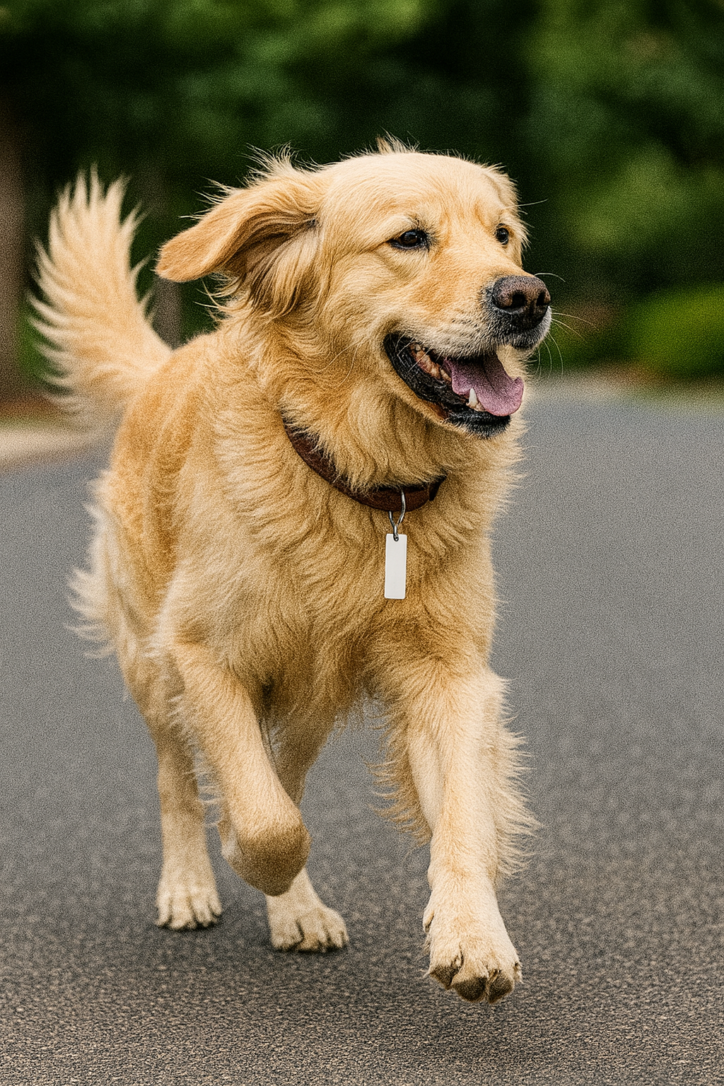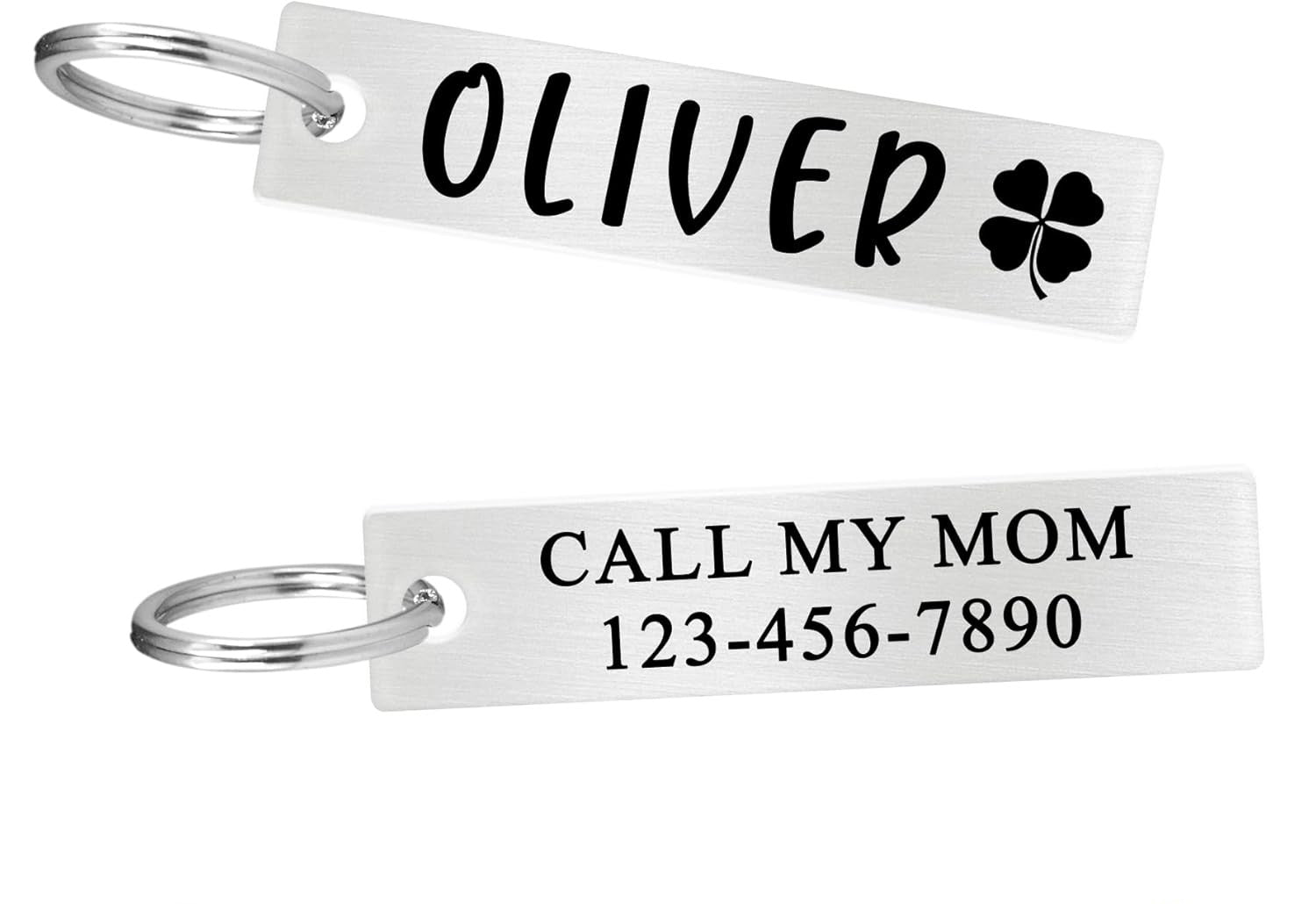 Placa de identificación rectangular, diseño clásico y elegante con mayor espacio para información. Perfecta para mascotas que necesitan más datos de contacto.